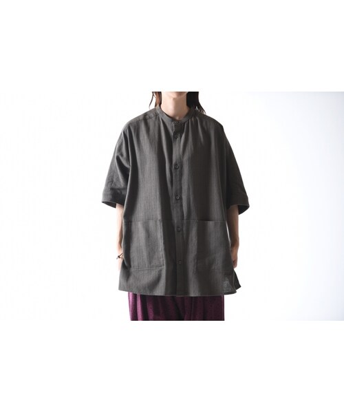 別名梨地織りと呼ばれるアムンゼン組織のコットン100%のオリジナル生地を使用したボックスシャツ。 ザラついた表面で肌へのタッチも良い通年で使用出来るのも魅力の一つ。 YANTORを語る上で欠かせない平面立体の技法で、袖と身頃が一体化しており、スクウェアを意識した独特のフォルムと切り替え部のポケットもディテールポイントの一つ。 ユニセックスブランドらしく男性女性どちらが着ても違和感の無いアイテムです。