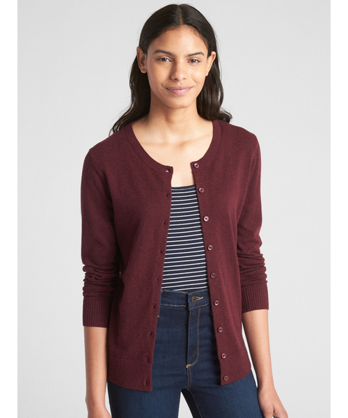 柔らかいニット。長袖、リブ編み仕様の袖口クルーネックにリブニットのトリム付き、ボタンフロント裾はリブ編み 細身のイージーフィット、ストレートシルエット腰丈モデルはGapレギュラーSサイズを着ています。 *商品タグに記載の価格とサイト上の販売価格が異なる事があります。