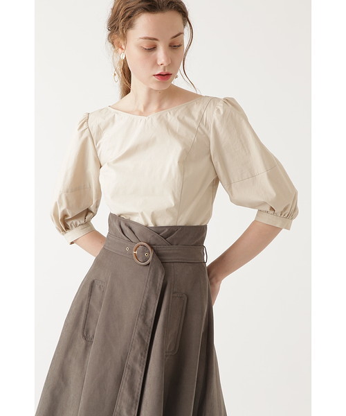 チェック柄の上にフロッキードットと無地の2柄で揃えたボリューム袖ブラウス。デコルテがきれいに見えるVあきのシルエットに、身幅はコンパクトで袖にボリュームを出した袖コンシャスなデザイン。袖は中間の位置で切替えて、そこからぽわっとシルエットを出した、大人も可愛く着られる仕上がりです。アイキャッチになるデザインは、パンツにもスカートにも合わせやすく、早くから今シーズンらしい装いを楽しめます。