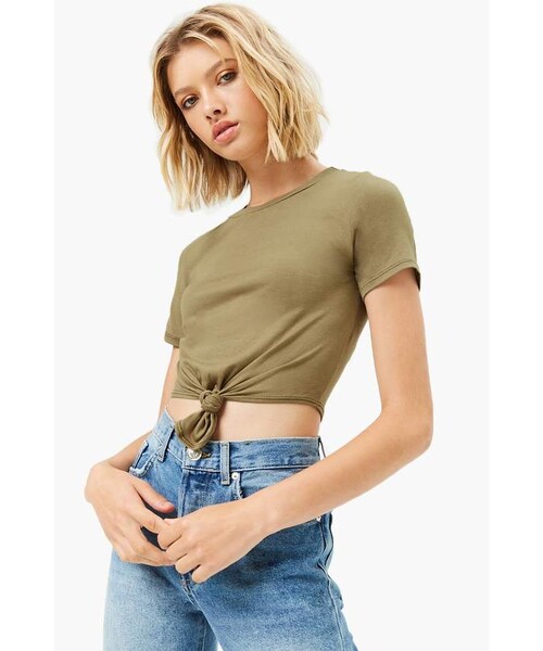 Details A slub knit tee with a knotted tie-front detail, short sleeves, a crew neck, and a cropped hem. Content + Care - 95% viscose, 5% spandex - Hand wash cold Size + Fit - Model is 5'9" and wearing a Small