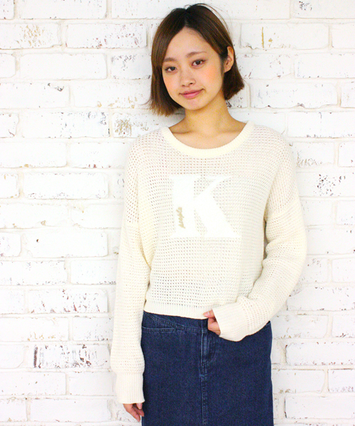 サガラ刺繍で施したロゴがポイントの春ニット。ニットなのですぐに着れて、いち早く春を感じていただけます♪袖が長めなので、ざっくり感のある可愛らしいシルエットになっております。 model:身長166cm 着用サイズ:F