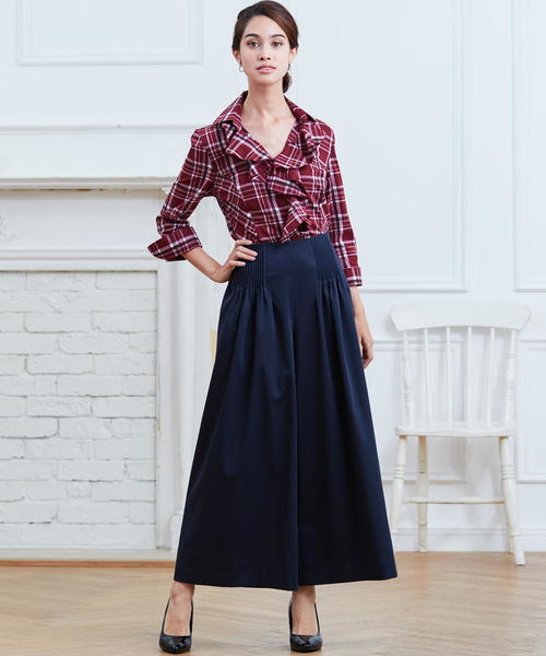 ハイウエストデザインとワイドシルエットをドッキングした、トレンド感のあるパンツです。ウエストに細かくタックを入れ、デザイン性のある仕上がりにしました。ポリエステル高混率でシワになりにくい、きれいめのサテン素材を使用。イージーな穿き心地ながら上品さがあり、オンオフ問わずにご着用いただけます。ウエスト後ろはゴム仕様です。 裏地無し。 ポケット2個。