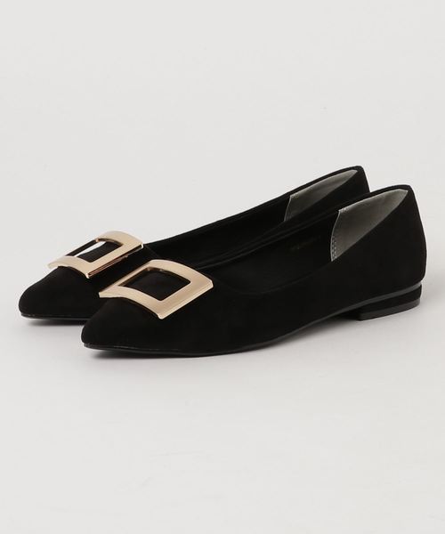 ゴールドのスクエアバックルが知的な印象を与えてくれるフラットパンプス。コーディネートのアクセントに、オンオフどちらにも重宝する優れた1足◎フラットソールとクッション性のあるインソールでとても履き心地がよく、長時間の着用もノンストレスです。