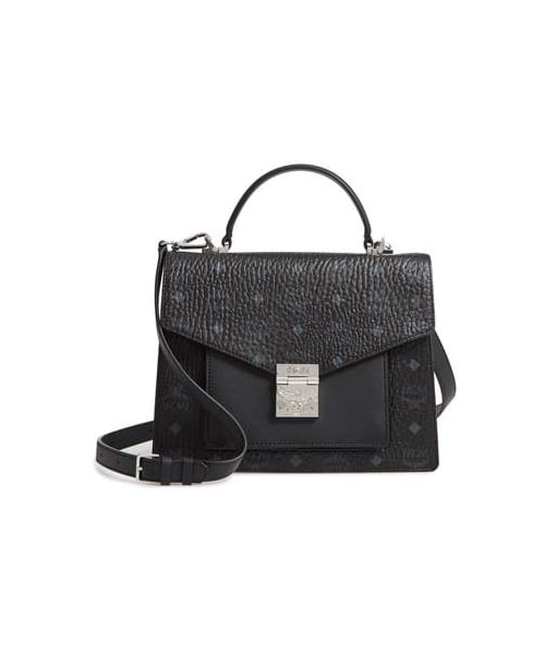 An ornate logo lock adds signature glamour to a structured, leather-trimmed satchel in the brand's iconic Visetos print. Style Name:Mcm Medium Patricia Visetos Coated Canvas Satchel. Style Number: 5644350. Available in stores.