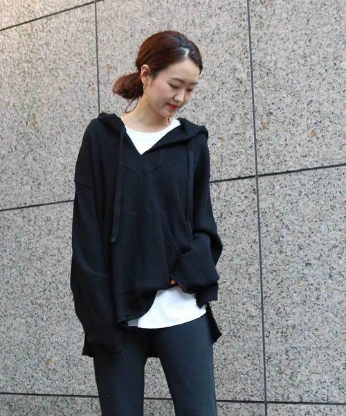 トレンドのビッグシルエットのワッフルメキシカンパーカーです。大きく開いた襟ぐりが、ゆったりシルエットに抜け感を演出してくれます。すっきりした襟ぐりなので、インナーを見せてレイヤードスタイルも楽しめるのがポイント。袖口と裾のフリンジ加工がカジュアルな印象の一枚です。同じシリーズのワッフルパンツとセットアップで着て頂くのもおすすめです。