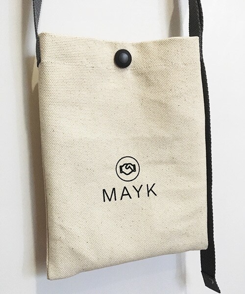 MAYKのオリジナルパターンで、1つ1つ丁寧に作った国内生産のボディーバッグです。 8号帆布をボディに使用し、フロント面には黒と赤でMAYKロゴが染み込みプリントで入ってます。 裏面は小物が入るポケットとフロント面のプリントカラーに合わせたカン止ステッチがポイントです。チャコールグレーの持手のサイズも簡単に調整できます。 糊付けされてない帆布を使用している為、厚みはありますが硬さが無く、使い易い生地感です。コンパクトなサイズ感なので、散歩やちょっとしたお出かけに最適です。