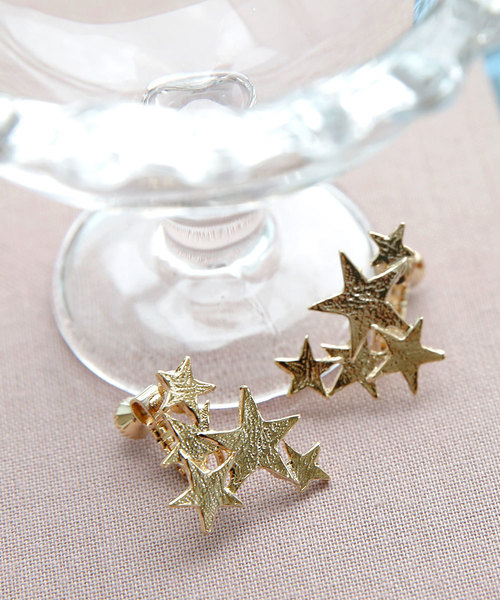 5つの星が耳元で煌めく、スターモチーフのイヤリングです。 ポップなモチーフながらも、ほんのりアンティークの様な表面加工が施してあるので、大人っぽく着けられます。 単色のシンプルな色使いなので、マニッシュなコーデにもキレイめなコーデにもマッチしますよ。 ◆《お気に入り登録》のおすすめ◆ 気になる商品は「お気に入り」登録がおすすめ。 ・「商品のお気に入り登録」で再入荷通知や、 ラスト1点の通知、セール通知も受け取ることができます! ・お気に入り登録商品は、マイページにて現在の商品詳細(価格情報や在庫状況)が確認が可能です。 お買い物リストの管理に是非ご利用下さい!