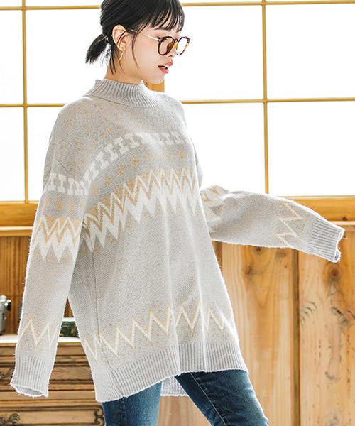 158cm のモデルがFreeサイズを着用 他にはないカジュアルな雰囲気のノルディックが前面にはいったハイネックのニット。 大きめのサイズ感で、細身のボトムスと相性抜群。 ふんわりした肌触りの良い風合いです。 ※着用画像と商品単体画像で色が異なる場合がございます。 ※商品単体画像を実物により近づけております