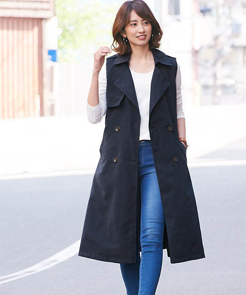 一枚でストイリングを格上げする“トレンチジレ” 【素材】 表面には微起毛で柔らかく手触りの良いピーチスキン素材を使用。 上品で落ち着いた大人の女性らしさを演出してくれます。 【デザイン】 どんなスタイリングともマッチするトレンチ型。 羽織るだけでいつものスタイリングを格上げしてくれます。