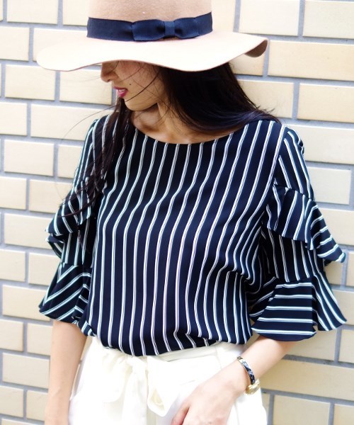 袖にあしらったボリュームフリルがフェミニン印象を与えるブラウスです。ジョーゼットの軽やかな素材を使用しており、堅苦しくないためONでもOFFでも活躍してくれます。単品で今すぐから着ることができるほか、ジャケットのインナーとしても重宝します。無地とストライプ柄をご用意しています。裾がラウンドカットされており、タックアウトも様になります。プルオーバー。 【 NARA CAMICIE 】 イタリア生まれのシャツ・ブラウスブランドNARA CAMICIE(ナラ カミーチェ) レディースを中心に、イタリアならではの豊富なデザインと多彩なカラーバリエーション、女性らしく見せる立体的パターンで美しいシルエットが特徴です。シャープなシャツからフリルやレースをあしらったブラウスはスーツのインナーやオフィス、フォーマルなコーデと幅広く活躍! ●お買い物をお得にもっと楽しく!上手な活用方法>>> ▼商品のお気に入り登録▼ 完売カラーの再入荷通知や、ラスト1点の通知、プライスダウンしたセール通知も受け取ることができます。 ▼ブランドのお気に入り登録▼ 新作や再入荷等、いち早くブランドのお得な情報を受け取ることができます。 【ご注意】 ・屋外の光や照明の当たり具合で、実際の商品の色味とカラー別画像の色味に若干の違いが発生する場合がございます。