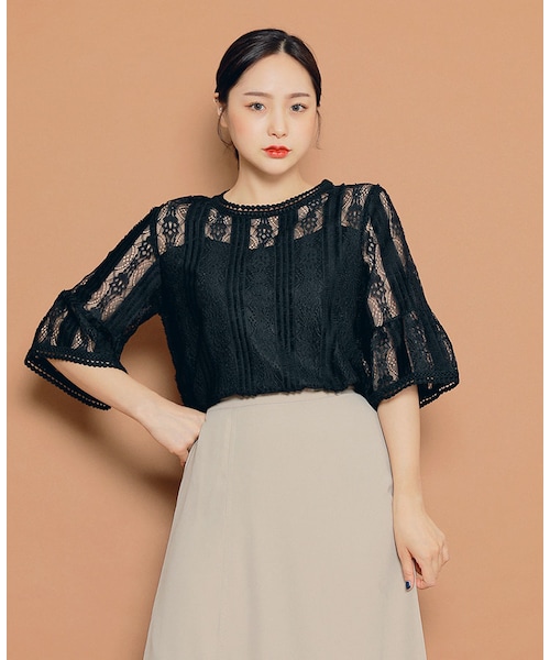 エレガントなパンチングレースを全体にあしらい、女性らしい雰囲気に♡デニムと合わせることで、ブラウスのラブリーさが引き立ちます♡広がりのあるスリーブラインで気になる二の腕もしっかりカバー◎合わせるボトムス次第で、多様なスタイリングを楽しめる夏ブラウスです。