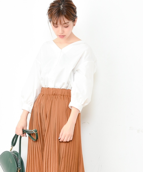 【2018AW natural couture】 バックスタイルまでお洒落にきまる人気のブラウス 前回も大好評を頂戴していた、あのブラウスに秋の新作が登場!背中部分にフリルをあしらい、バックスタイルまでお洒落な1着。すっきりとしたVネックディティールが、デコルテ周りを綺麗見せてくれるのでネックレスとの相性も抜群です。肩の落ちたドロップショルダーに、少しゆったりとした身幅がこなれ感のある着こなしに。程良いボリューム感のあるお袖には、袖口部分にギャザーを程し、きゅっと引きしまった女性らしいシルエットを実現。気になるカラー展開は無地と人気のチェック柄をご用意!