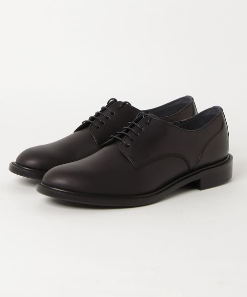 【MIHARAYASUHIRO(ミハラヤスヒロ)】外羽根のプレーントゥタイプ。ミハラヤスヒロのシューズの特徴でもある炙り出しはヒールの部分のみにとどめ、シンプルながらもヒールを浮き立たせている遊び心のきいたデザインなので後ろから見た際にブランドをさりげなく主張できるようなデザイン。堅苦しくないデザインなので、ビジネスでも普段使いでも幅広くご利用ください。