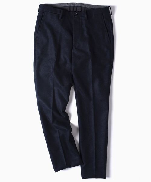 定番人気アイテム"AIRY"ウールパンツが登場!◆"AIRY"という名を冠した風合い豊かな仕上がりのウール素材ウール素材の織り・加工を日本で行い、非常にソフトな風合いと、シルキーな光沢感が特徴の風合い豊かに仕上げたジャケット。糸はスーパー100sウールの先染め生地を使用。また、ストレッチ性のある素材のため着心地も良く、これからの季節に活躍間違いなしの逸品です。◆エレガントで、大人な雰囲気に仕上げたパンツSHIPS各店でもロング&ビッグセラーを誇る定番トラウザーズ。すっきりとしたシルエット、細いウエスマンとベルトループ、スタイルをよりよく見せてくれるヒップのデザインはもちろん、マーベルト部分のデザイン等、上品なデザインに仕上げています。また、フロントダーツではなく、後身にダーツを2本取る事ですっきりとしたシルエットを実現。その分詰まり気味で窮屈な印象があったヒップからももにかけてのゆとりをつくり、ジャストフィットでお穿きいただけます。 さらに裾幅を細くすることで裾まですっきりとしたシャープな印象に仕上げました。model: H179 B81 W68 H89 着用サイズ31※同生地で展開する<SC: AIRY ウール ストレッチ セットアップ ジャケット 型番:117-04-0255>と合わせてセットアップでお使いいただけます。※画像の商品はサンプルです。実際の商品と仕様、加工、サイズが若干異なる場合がございます。