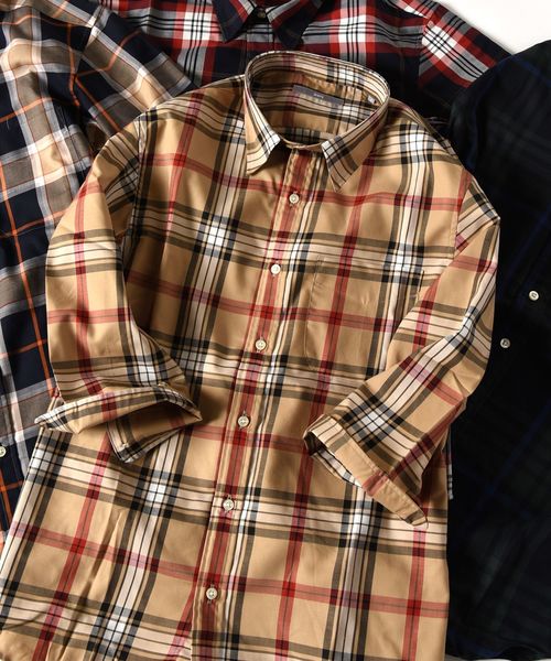 シップスオリジナルの深みのあるチェック柄が特徴の7スリーブシャツ綿の繊維に特殊技術を施したことにより風合いよく仕上がったオリジナル素材になります。秋を彷彿させる深みのあるチェック柄となっており、次シーズンを意識したコーディネートに適した配色です。シルエットはやや細身のスタンダード型になっており、着やすいデザインですので今からでもTシャツの羽織りとしても重宝します。もう少し先になるとカーディガンやジャケット系のインナーにももたつきがなく着ていただけます。