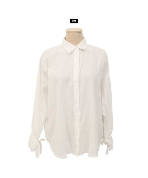 シンプルなシャツ袖にリボンを施したオシャレなブラウス。 レギュラーなフォルムのブラウスを、スリーブにリボンをつけてガーリッシュにアレンジしました。 程よい着丈のブラウスはスカートやパンツスタイルともきれいにおさまるので、ワードローブにひとつあると重宝します。