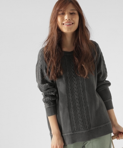 綿ニットにフェイド加工を施してニュアンスのある表情に仕上げたニットプルオーバー。 お尻が隠れるくらいのやや長め着丈。 デニム合せてカジュアルに、フレアスカートに合わせてレディに、と着回しのきく1枚です。