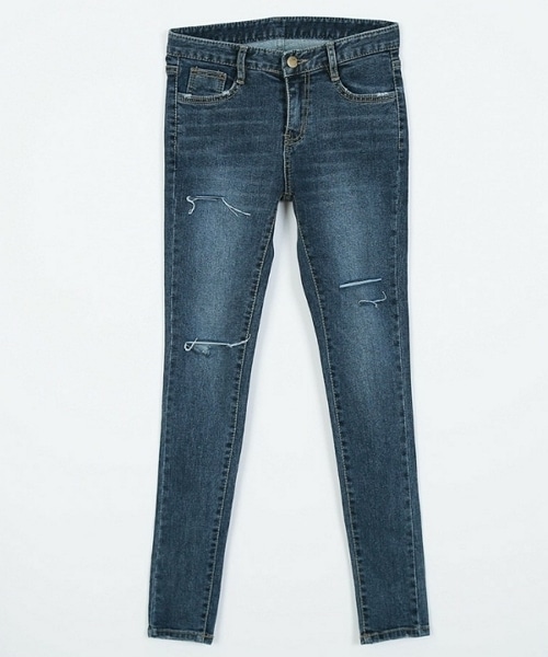 美スタイルを叶えるスキニージーンズ! 程よいダメージ加工でこなれ感をプラスしたアイテムです。 カジュアルなTシャツからきれいめなブラウスまで、様々なトップスとマッチします◎