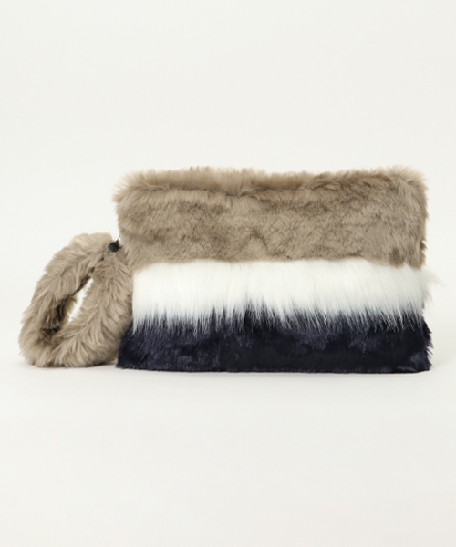 昨年大人気だったフェイクファークラッチが今季も登場! コーデのポイントになってくれる3カラーは、少し落ち着きのあるイメージで大人でも使いやすいカラーリング♪ 真ん中のファーの毛足が長めで、アクセントになっています。 さらにこちらは、持ち手までファーというのがポイント!! フェイクファーの質感も、よりリアルに近い風合いに近づけ、ふわふわリッチなボリュームにこだわりました♪ 内ポケット×1、ハンドル取り外し可。