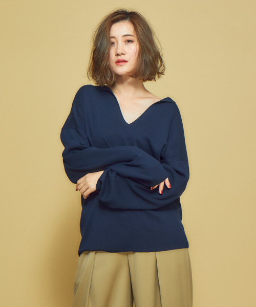 2018 AUTUMN COLLECTION "Daddy's Chest"スリットの入ったクルーネックがヘルシーな印象のプルオーバー。 デコルテ周りをすっきりと見せてくれます。 ネックラインを折ったり袖をそのまま垂らして着くずして、こなれたスタイリングがおすすめです。 model:H165・B80・W60・H86 着用サイズ:FREE
