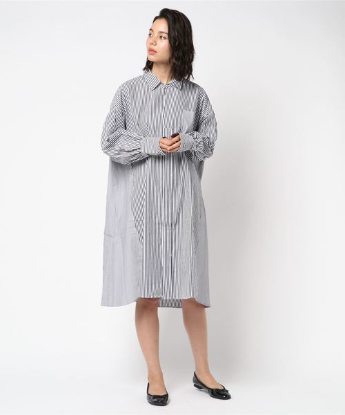 ボリューム袖が目を惹くロングシャツワンピース。綿100%のタイプライター生地を使用しており、ほどよいハリ感できちんと見せできるのも◎フロント釦をオープンにして羽織りや、手持ちのベルトを加えてメリハリを加えたりと、アレンジ力の高い1枚。さらに、細めパンツを合わせ、襟を後ろに抜いて背中にボリュームを出して着こなせば、より今年らしいスタイリングが楽しめます。