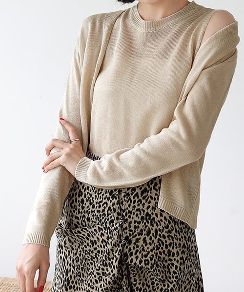 やわらかい肌触りな生地感のアンサンブル。うっすら透け感があるので、タンクトップやキャミソールをあわせてください。 ※WEARに記載してある金額と、DHOLIC通販サイトに記載してある金額にシステム都合上、稀に誤差が生じます。正しい金額はDHOLIC通販サイトに記載された金額です。