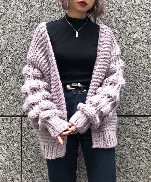 【2018AW!通常販売開始!!】袖のぽこぽこ感がかわいいニットカーデ。ゆったりしたシルエットでさらっと羽織ってもサマになります。肉厚なカーディガンは、型崩れしにくいのでシルエットもキレイ!軽めのアウターをしても大活躍します!デニムでカジュアルに合わせるのも良いですが、ワンピースと合わせて女っぽくあわせても◎