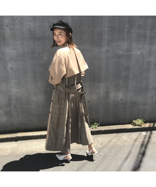 フロントサイドとバックをグレンチェックで切替えたロングトレンチ。 バックのプリーツ使いで、歩くたびに動きの出るデザインに。 さらりと羽織るだけで、トレンド感の出る1着です。