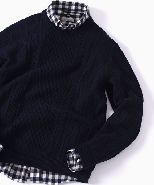 一枚は持っておきたいSHIPSの定番ニット! ◆立体感のある編地のアランニット フィッシャーマンパターンが特徴的な、ミドルゲージのクルーネックニット。柔らかな素材感を表現するため、糸の仕上げからこだわった着心地の良さもポイントの1枚です。 毎年少しずつアップデートを加え、ピタピタになり過ぎない、拘り抜いたシルエットを含め上品な雰囲気を演出しています。 ◆豊富なカラーバリエーションで幅広いスタイリングを演出 ナチュラルカラーのホワイト、ネイビー、グレーといったベーシックカラーに加え、シーズンカラーのヴァーガンディー、インディゴ調ブルーミックス等、幅広いカラーバリエーションをラインナップ。フィッシャーマンパターンの丁寧な仕上げはもちろん、表情溢れるデザインが特徴です。 ゆるめに一枚で着こなしたスタイルを始め、キレイめにまとめたコーディネイトから、シンプルなシャツとのレイヤードに、ニットキャップやハットと合わせた着こなし等、気分やコーディネイトによって様々なスタイリングを楽しめるアイテムに仕上がっています。 model:H178 B85 W73 H90 グレー着用サイズLARGE グレー着用サイズMEDIUM ※画像の商品はサンプルです。 実際の商品では色味、また一部仕様が変更になる場合もございますので、予めご了承ください。