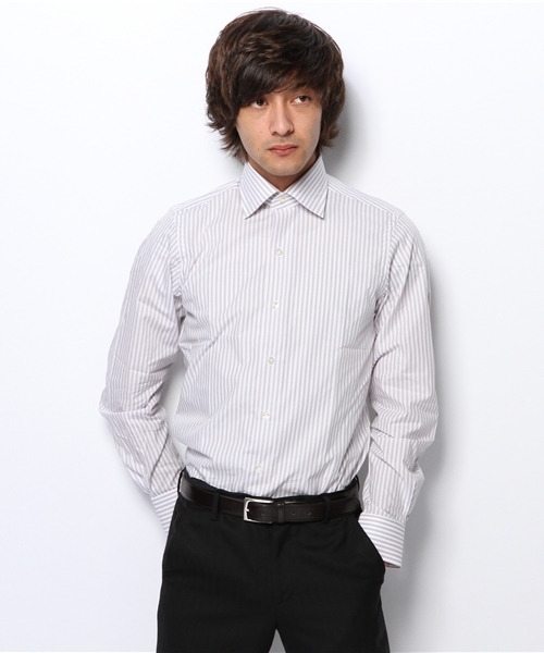 コットン素材で仕上げたドレスシャツです。すっきりとしたシルエットがシャープな印象。ベーシックなロンドンストライプ柄が季節を問わずビジネスシーンで活躍するおすすめの1枚です。model:H175 B87 W69 H86 着用サイズ:37cm店舗にお問い合わせの際は、全国のグリーンレーベル リラクシング各店まで下記の品番をお申し付け下さい。品番:3111-197-1538
