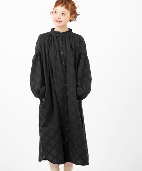 矢羽根柄の刺繍生地を使ったコットンワンピース。 さりげない立体感と格子柄のようなデザインで、甘すぎない刺繍を楽しめます。 衿元のギャザーや袖にたっぷりとギャザーを寄せてこだわったブラウス。 体を泳ぐゆったりとしたシルエットと、ボタンフライのデザインなのでロングシーズン着回せる一枚です。 顔まわりをすっきりと見せるスタンドカラーの首元で、大人ナチュラルなきちんと感を演出。 1枚でメインとしてはもちろん、ライトアウターとしても幅広いコーディネートが叶います。