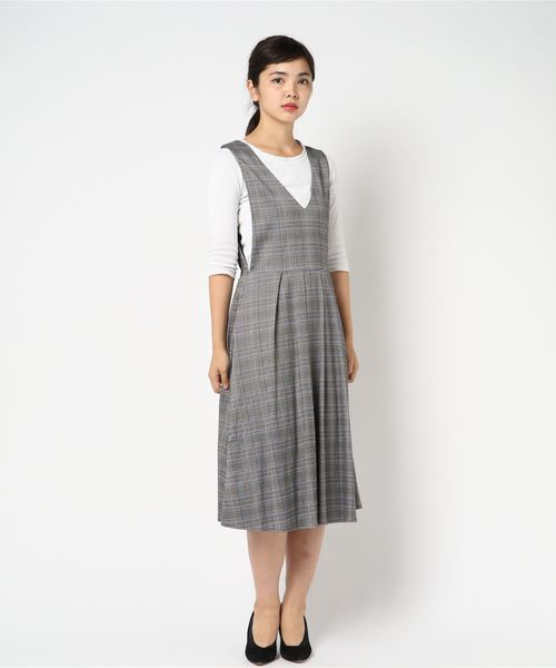 ■トレンドライクな大人可愛いジャンスカ■ シンプルなトップスを合わせるだけでスタイリングが完成する優秀ワンピース♪ 細かいチェック柄で主張しすぎないのでどんなアウターも合わせやすく、着回せること間違いなしのアイテム。 アームホールが広いのでボリューム袖のトップスもレイヤードできます◎