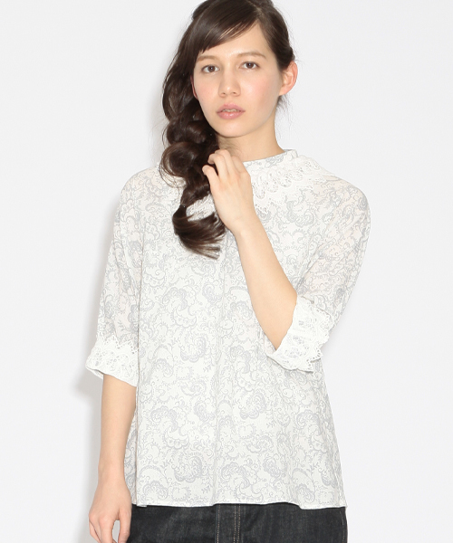 襟元・袖口にあしらわれた幅広レースが目を惹くブラウスはヴィンテージブラウスをアイディアソースにしたもの。後ろ開きのデザインもノスタルジックな雰囲気を盛り上げます。 今回のニューモデルはペイズリー柄をプリント♪デニムと合わせてカジュアルにも、キュロットと合わせてクラシックスタイルにも馴染みます。 店舗へお問い合わせの際は下記品番をお伝えください。 品番:13-11-0164-867