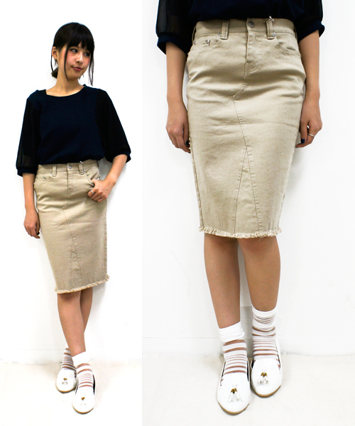 ミドル丈のカラースカートはカジュアルに使える万能アイテム!! スカートの中でも最もトレンドのシルエットをストレッチの生地で◎ コットンパンツ系のテイストでスニーカーからヒール系までどのSHOESに合わせてもOK♪♪ 動きやすく、カラバリも豊富で違うカラーも欲しくなる1本に完成させました☆★ ショート丈ゆったり目のニットやチェックシャツにサスペンダーなどコーディネートの幅も広がること間違いなしです!! ●着用モデル:160cm ●着用サイズ:Sサイズ
