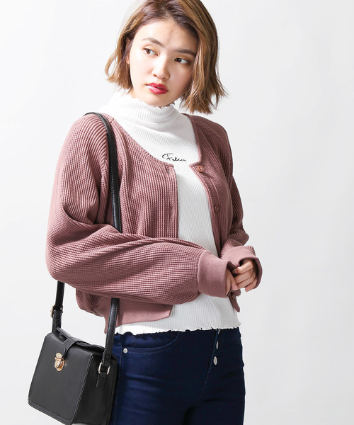 ライトアウターとしても大活躍 柔らかく肌触りの良いワッフル地で仕上げたカーディガン。 ショート丈かつ、程よくゆとりのあるシルエットでフェミニンな雰囲気を演出してくれます。 さらっと気軽に羽織れるのも嬉しいポイント。 今季はベレー帽やチョーカーなど、小物で遊びを効かせたコーディネートもオススメです。
