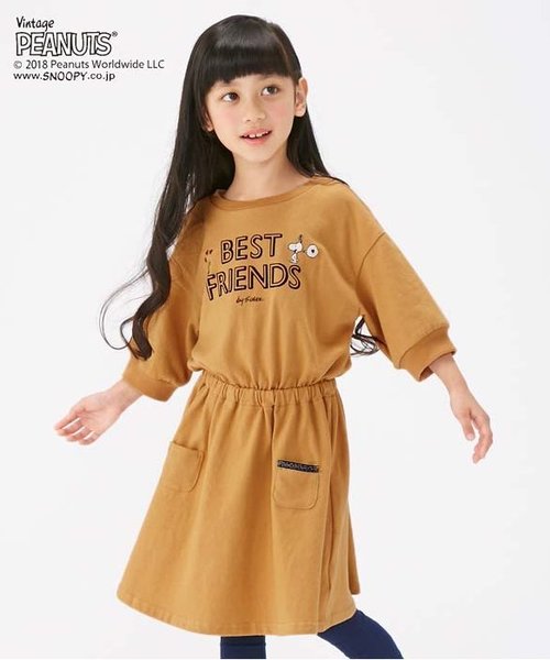 BREEZE(ブリーズ)のワンピース「PEANUTSコラボワンピース」は、手頃な価格とアメカジテイストを取り入れた大人顔負けのデザインが人気! デニム キャメル