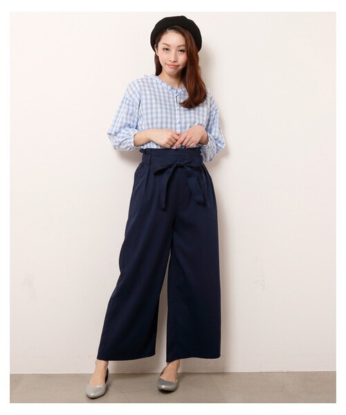 タックギャザーをよせ、ドレープ豊かにデザインしたワイドパンツです。脚長効果を意識したハイウエストは、リボンベルトでくびれも強調してくれます。きれいめコーデにもあわせやすいワイドパンツは、1着持っておくと便利です。