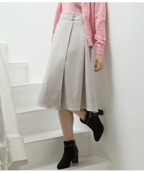 滑らかなスエード調素材を仕様したミディスカート。アシンメトリーにタックを施した、ラップ風のデザインがきれいなフレアシルエットを描くポイントです。縦に並んだ包みボタンが上品なアクセント。高めのウエスト位置はスタイルアップ効果も叶います。・秋らしいスエード調素材・ラップ風のタックデザインがポイント・スタイルアップ効果も叶うハイウエスト