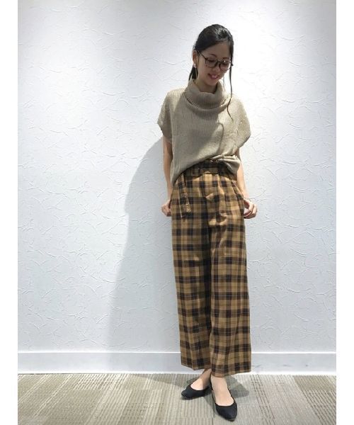 くるみバックルベルトがインパクト大のハイウェストの2タックワイドパンツ。秋色トップスに合わせやすい秋ならではの色使いのチェック柄がポイント。 センタープレスが入っているので、すっきりしたシルエットで着用が可能なのも嬉しいポイントです。
