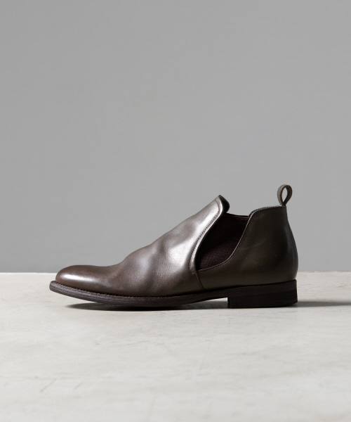 きれいめスタイルにも最適なショートサイドゴアブーツ。上質な牛革を使用しており、経年変化をお楽しみ頂けます。ボリュームを軽減し、細身でスマートフォルムにする事でスタイリッシュに印象に。細身、ワイドなどパンツのシルエットを選ばず合わす事ができ,1足持っておくだけで重宝します。サイズ感について ・コンバースやナイキなどといったスニーカーと比較してもおおよそ0.5cm~1cm程大きく作られております。Ex.コンバースで27.0cmを履かれている方は、SIZE:42(26.0cm)程度とお考え下さい。※履き方・足型等、個人差はございますので、あくまでも参考程度にお考え下さいませ。