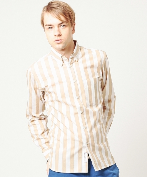 昨シーズン好評頂いたビッグストライプ柄のボタンダウンシャツを春夏らしいカラーリングで御用意。 単体での存在感はもちろんインナーでさりげなくアクセントにもなる万能なデザインです。 Model:H180 B87 W75 H90 Size:M 店舗へお問い合わせの際は下記品番をお伝えください。 品番:51-11-0317-012