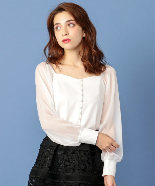 大人フェミニンな雰囲気を醸し出す、ビスチェ風シースルースリーブトップス。広めのあきのネックで、デコルテをすっきりと魅せ大人の色香が漂います。シンプルコーデに取り入れるだけでも、甘さのある大人レディなスタイリングを楽しめるアイテムです!************ **********透け感:あり・なし裏地:なし伸縮性:あり光沢感:あり生地の厚さ:普通ファスナー:なし*********************※取り扱いについては、商品についている品質表示でご確認ください。※こちらの商品は、MIIAでの取り扱いになります。直接店舗へお問い合わせの際はMIIA店舗へお願い致します。※照明の関係により、実際よりも色味が違って見える場合があります。またパソコン・スマートフォンなどの環境により、若干製品と画像のカラーが異なる場合もございます。予めご了承ください。※サイト上のカラー名と、お届け商品に記載されているカラー名が異なる場合がございます。