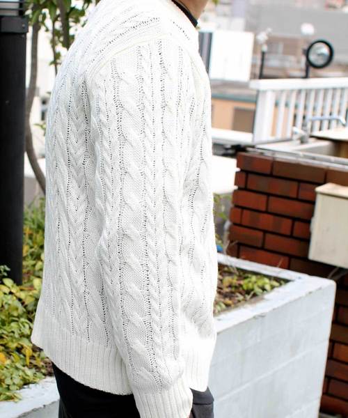 今期のトレンドざっくり編みで表現された雰囲気抜群のニットアイテムが登場!!寒さが増してくるこの季節にうってつけのおススメニットが入荷致しました!柄目も定番で使いやすいケーブル編みをベースにやや粗めにざっくりと編みたてた注目の一着!!キレイめのコートやジャケットのインナーにも大活躍ですが、あえてオーバーサイズをカジュアルに合わせてお使いただくのも◎!!アクリル100%の素材でお作りしている分、チクチクした着心地も少なく、洗濯時の縮みもない分、デイリーにガンガン使えるおススメのニットです!!