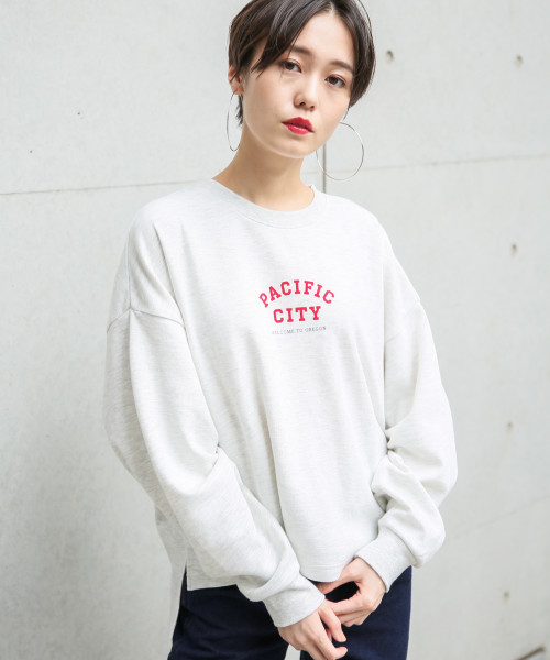 今季マストアイテムのBIGシルエット 去年大人気だったBIGシルエットのスウェットが今年も登場!! 表面が綺麗めなダンボール素材を使用しており、フロント部分に英字ロゴがプリントされたデザイン♪ 前後の丈の長さが違うので前だけインして、すっきりとしたスタイルも楽しめます!! ■おすすめスタイリング■ ボトムスも太めのパンツやロングスカートで合わせて今年らしいゆるコーデもおしゃれに決まります。 スキニーパンツなどでスタイリッシュ合わせもおすすめです!