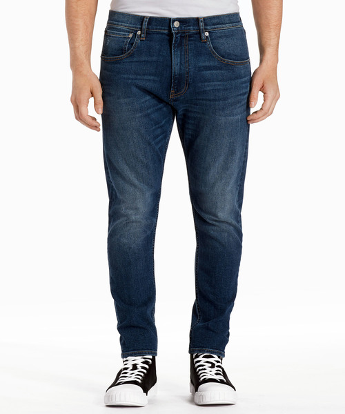 ウォッシュ加工を施しヴィンテージ感を演出した「CALVIN KLEIN JEANS」デニムパンツは、クラシックな5ポケットのデザインをベースに裾に向かって細くなるテーパードシルエットが特徴の1本です。太すぎない絶妙なシルエットでカジュアルな雰囲気でありながらも上品に穿きこなすことができるデニムは、さまざまなコーディネートでアレンジができます。ブランドロゴを刻印した釦やレザーのパッチなど、細かなディティールにもこだわり作られたアイテムです。ジップフライ。