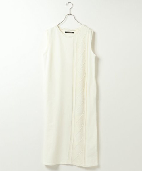 ノースリーブのニットワンピース。 ケーブル編みのニットを切り替えたデザインが、縦のラインをすっきりと演出! ヴィンテージのような色落ちを出す「ピグメント」と呼ばれる加工で、味わい深い絶妙なカラーに仕上がりました♪ 今年はレギンスとのコーデもおすすめ! 暑さの残る時期には一枚で、春や秋はGジャン・カーデを羽織ってと、長いシーズン着回せます。 両サイドにポケット付き。 [クリーニング] 手洗い可、ウェットクリーニング(W)、 洗濯の際はネットを使用してください