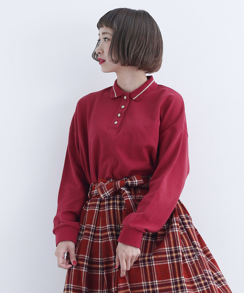 襟のラインやボタンの配色使いがアクセントなポロシャツ。程よくゆとりを持たせたサイズ感でラフにスポーティスタイルを楽しめるアイテム。柄物やロング丈のスカートとも相性良くイン・アウトどちらの着こなしもばっちりハマり、カジュアルからガーリーまでジャンル問わずコーディネートできる優れもの。