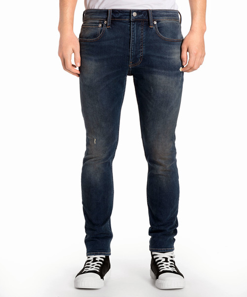 2018年秋冬からデザインをリニューアルしたCalvin Klein Jeansのジーンズ。こちらのモデルはもっとも細いスキニーシルエットが特徴の「CKJ016」モデル。腰からヒップに掛けてタイトにフィットするシルエットは、レッグラインを上品に見せることができる1本です。タイトな作りですが、ストレッチ性があり締め付けることがなくリラックスして穿ける点もポイントです。ウォッシュ加工を施し、ヴィンテージ感を表現したジーンズはラフなカジュアルスタイルと相性の良いジーンズです。