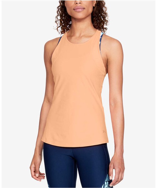 Make a statement on race day in this tank top from Under Armour, the perfect combination of style and performance for training or competition. Mesh at the front and back enhances ventilation, while a racerback with a pleat elevates the look.