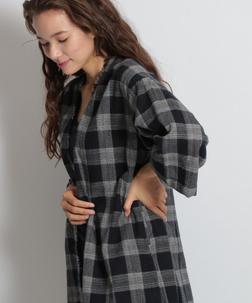 ナチュラルな雰囲気のチェック柄ガウン。 やわらかいコットン素材で、甘く女性らしい印象ですが、 裾をホヅる加工を施すことでカジュアルさをプラスしました。 ノースリーブやTシャツ合わせで、軽い羽織として今から長く活躍してくれます。 後ろのVネックもポイント。インナーのカラーを見せても可愛く仕上がります。